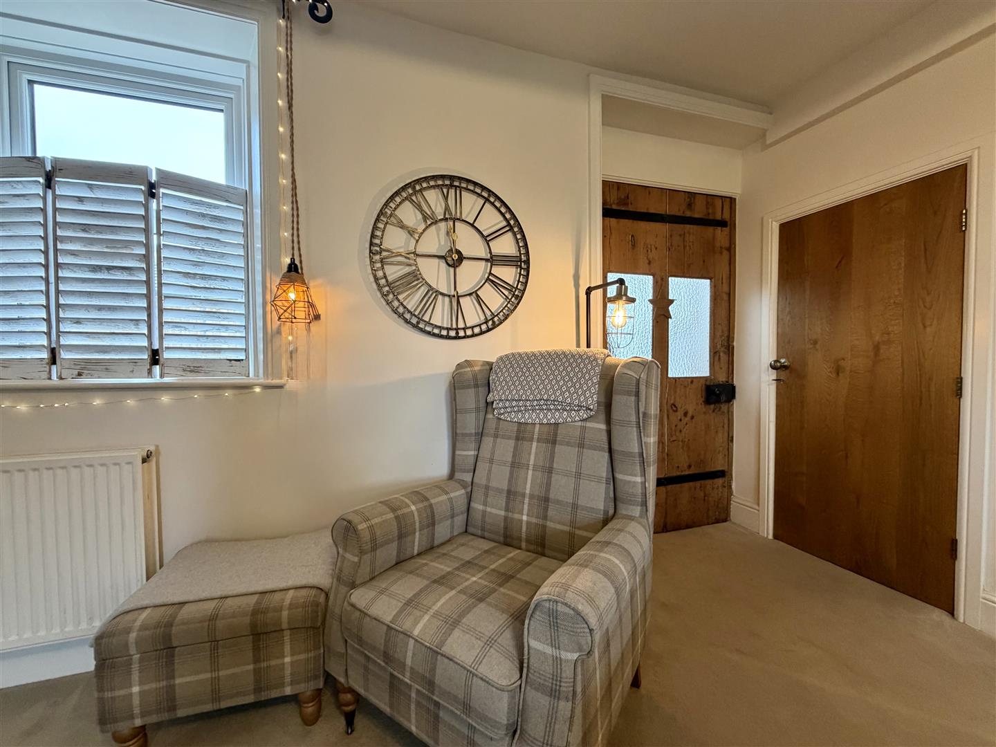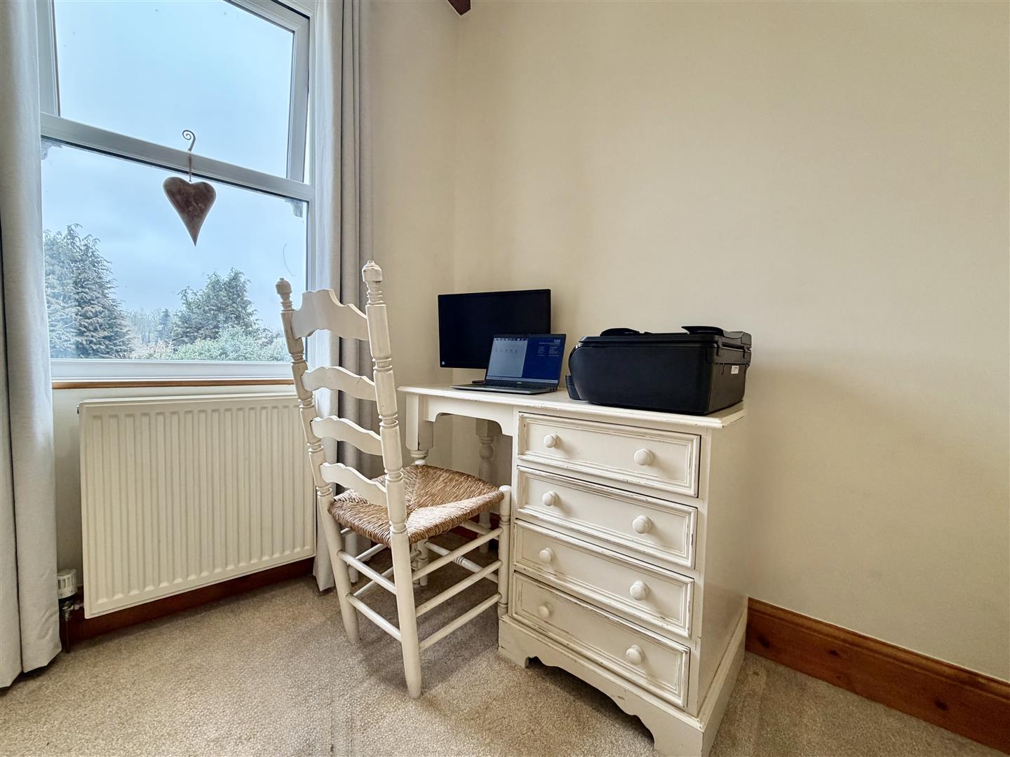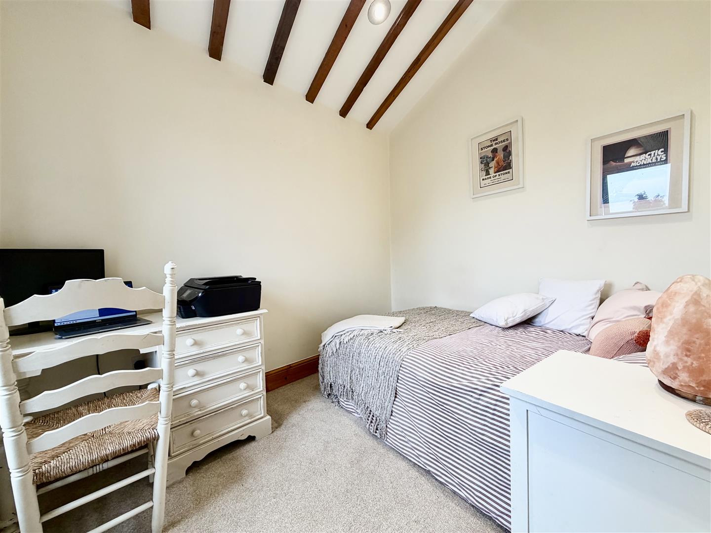 Positioned just off the living room and affording a host of potential uses including double bedroom or generous home office this delightful room includes a feature vaulted ceiling with exposed beams and window overlooking the garden.