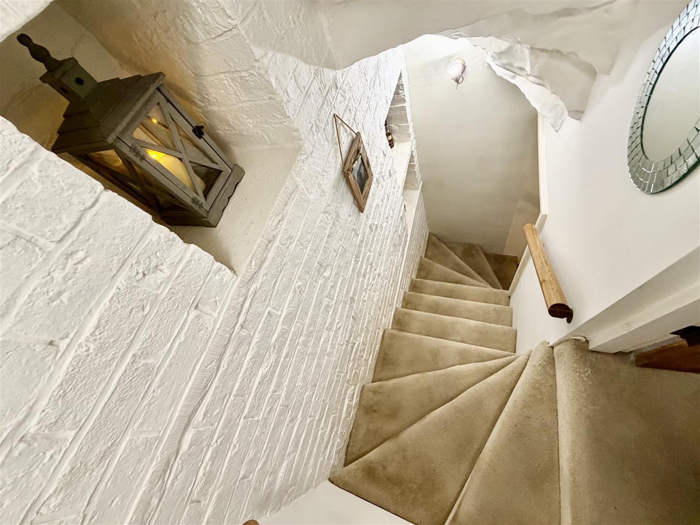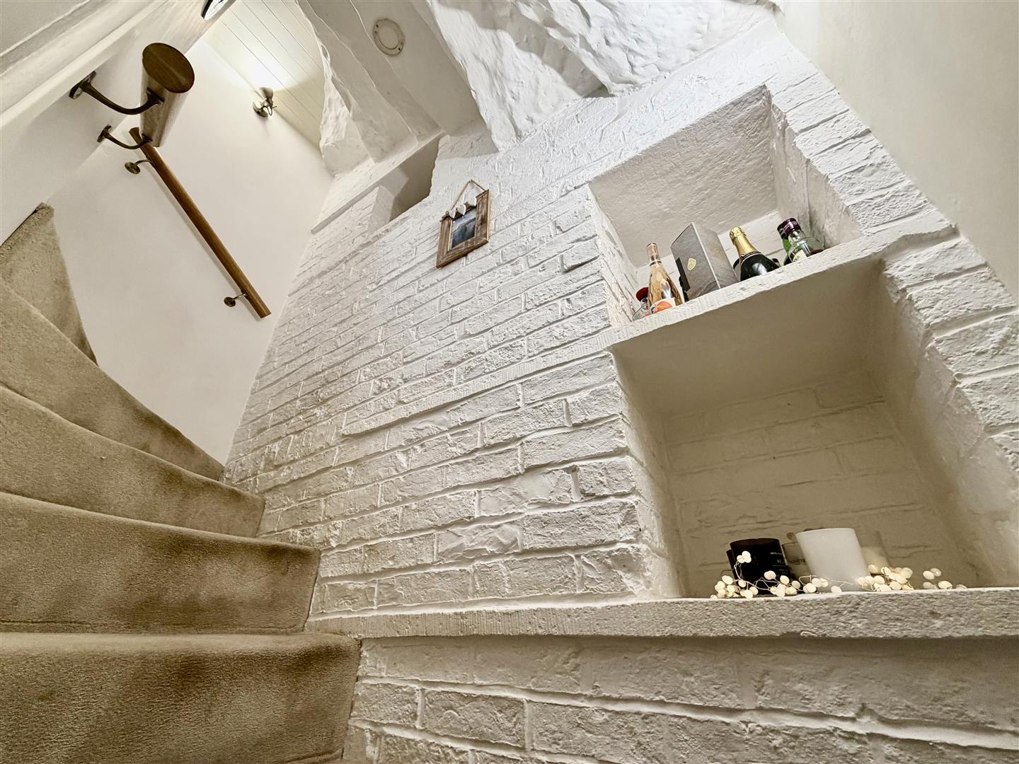 A turned staircase with attractively whitewashed walls leads to the lower ground floor accommodation.