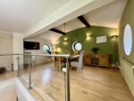 A turned staircase ascends to the first floor having a feature glass and steel balustrade affording a contemporary and stylish feel with further porthole window to the front, access doors to bedrooms and further staircase to upper floor.