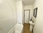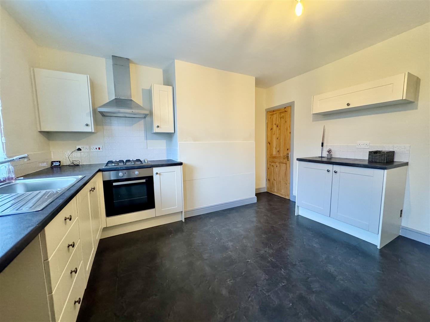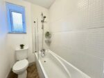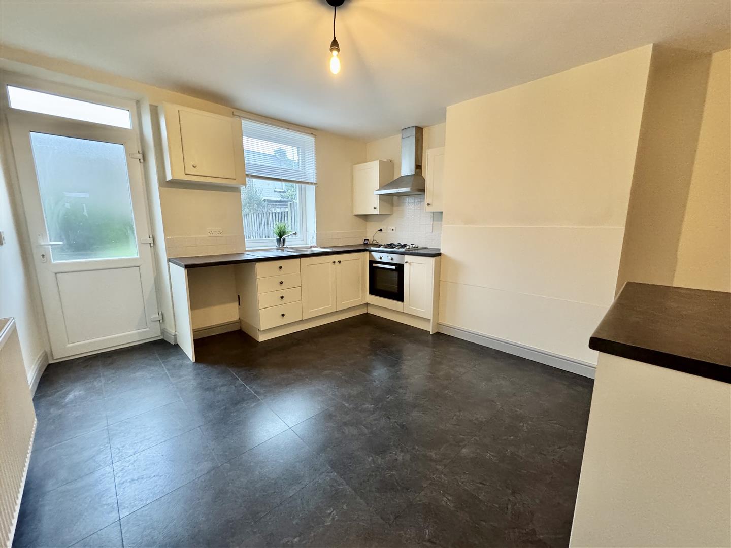 Well proportioned kitchen diner, situated at the rear of the property with the double glazed window giving views of the garden and drawing in natural light. The kitchen consists of a range of neutral wall and base units, complimentary worktops, stainless steel sink with mixer tap and tiled splashbacks. Integral appliances come in the form of an electric oven, four ring gas hob and stainless steel extractor hood over plus there is space for a fridge freezer and plumbing for a washing machine. There is plenty of room for a dining table and chairs, laminate tiled flooring runs underfoot, there is a wall mounted radiator and a pendant ceiling light. A double glazed external door leads to the rear garden.