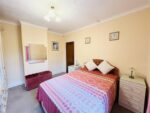 This good size bedroom has a side facing window, neutral décor and a decorative ceiling rose with a brass effect light fitting. There is ample space to accommodate freestanding bedroom furniture. A door leads to the entrance hallway.