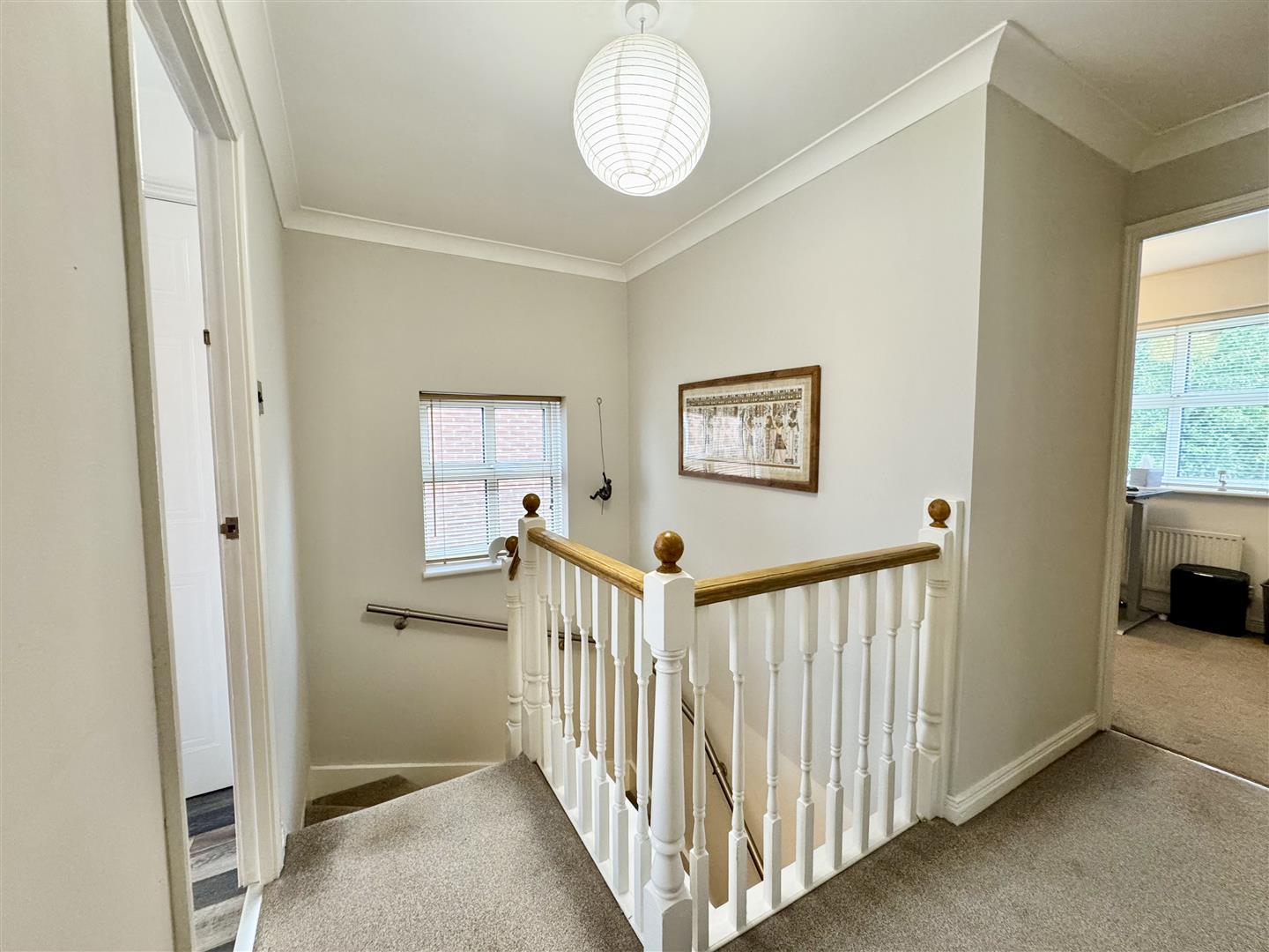 Stairs ascend from the hall to this gallery style landing having carpet flooring, a wall mounted radiator and double glazed window to the side. There is access to the loft, coving to the ceiling and pendant lighting. Internal doors leads to all bedrooms and the house bathroom.