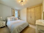 A neutrally decorated, dual aspect double bedroom with views over the cul de sac below with fitted wardrobes, space for freestanding furniture and a door leads to the first floor landing.