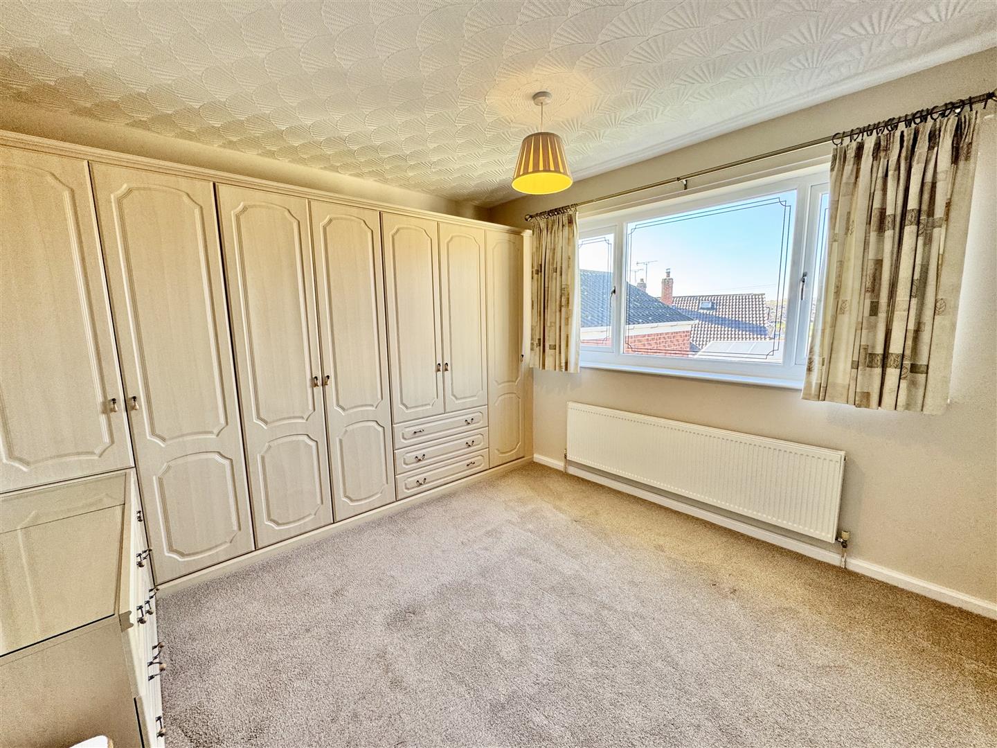 Excellent main bedroom, featuring a great range of fitted wardrobes including one double, one tall boy with drawers, a corner cupboard, a single wardrobe and a separate set of drawers. There is carpet flooring, a wall mounted radiator pendant ceiling lighting with natural light drawn in from the double glazed window to the rear which overlooks the rear garden. An internal door leads to the inner lobby.