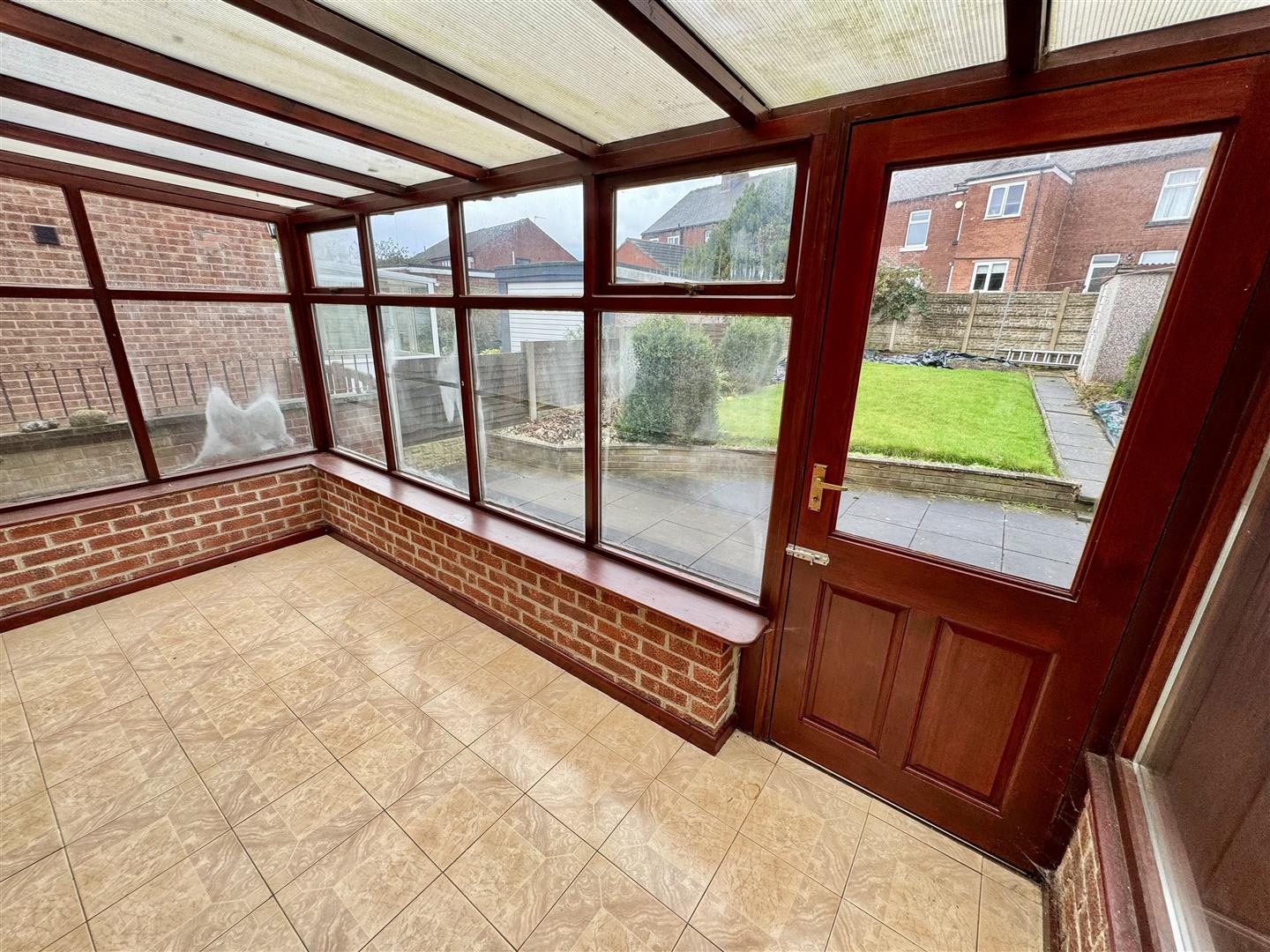 Very light room having timber frame double glazed windows set on a solid brick base and overlooking the garden. There is a tiled floor and a wall light with patio doors leading to the lounge diner and an external door taking you to the garden.