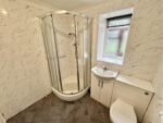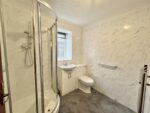 Superb addition having a three piece suite in white consisting of a corner shower cubicle with thermostatic shower and vanity wash unit incorporating a closed coupled WC. The walls are tiled to full height, there is a chrome towel radiator, tiled flooring and ceiling lighting. A double glazed window with obscure glass brings in natural light and an internal door leads to the inner hall.