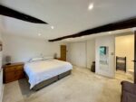 This generously sized and beautifully decorated double bedroom has views over the gardens through its large dual aspect windows. There is a bank of fitted wardrobes, ample space for free standing bedroom furniture, exposed beams and spotlighting to the ceiling. Doors lead to the W.C and back through to the landing.