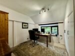 Currently used as a home office, this nicely presented double bedroom has garden views, fitted storage cupboards with shelving, space for furniture and a door leads to the landing