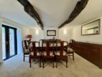 Perfect for entertaining guests, this characterful and inviting dining room has lovely exposed beams to the ceiling and a stone fireplace with shelving housing a gas fire. There is space for a dining table, chairs and further freestanding furniture. Patio doors open to the garden bringing the outside in and a door opens to the utility space. An opening leads to the kitchen.
