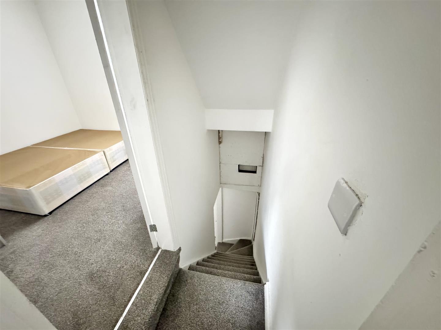 Second double bedroom, this time located at the rear of the property with the double glazed window overlooking the rear patio. There is space for freestanding bedroom furniture, carpet flooring and a wall mounted radiator. The boiler is situated is a good size and useful over stairs cupboard and an internal door leads to the landing.