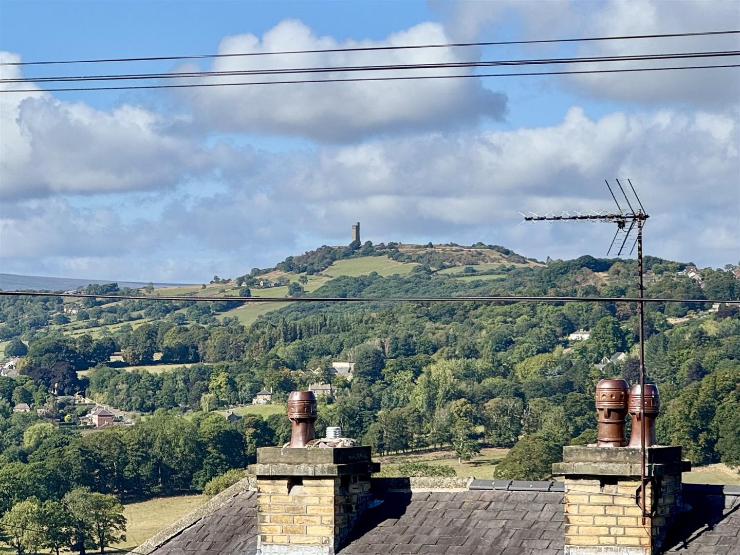 This light and airy double bedroom has ample space for freestanding bedroom furniture and a front facing window which overlooks the quiet street below and fantastic far reaching views over Huddersfield and Castle Hill beyond. A door leads to the landing.