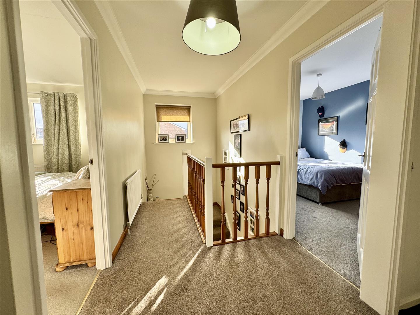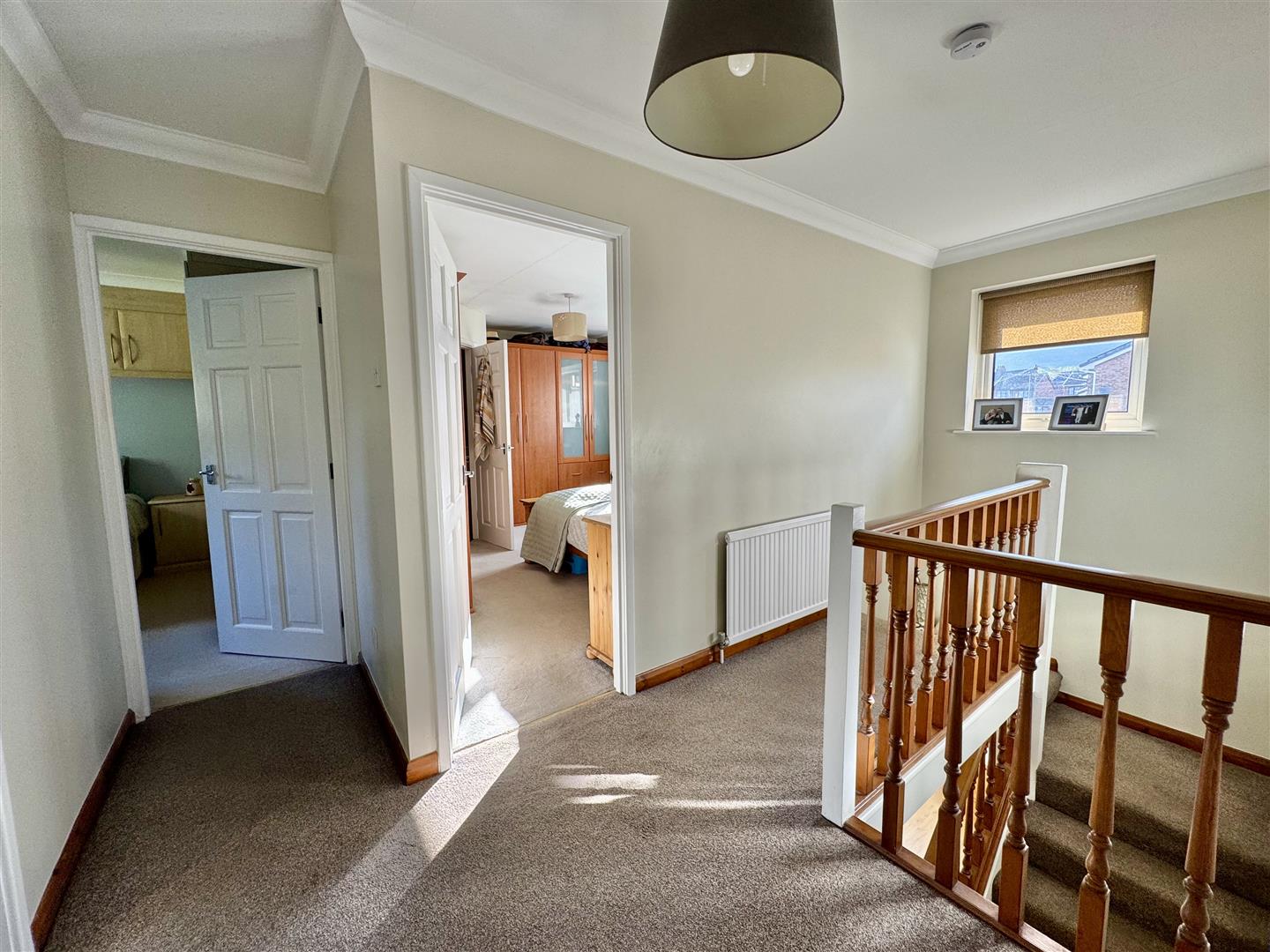Stairs ascend from the hall to this sizeable, light and airy landing with natural light brought in via the double glazed window to the front. There is carpet flooring, a wall mounted radiator and access to the loft. Internal doors lead to the bathroom and all bedrooms.