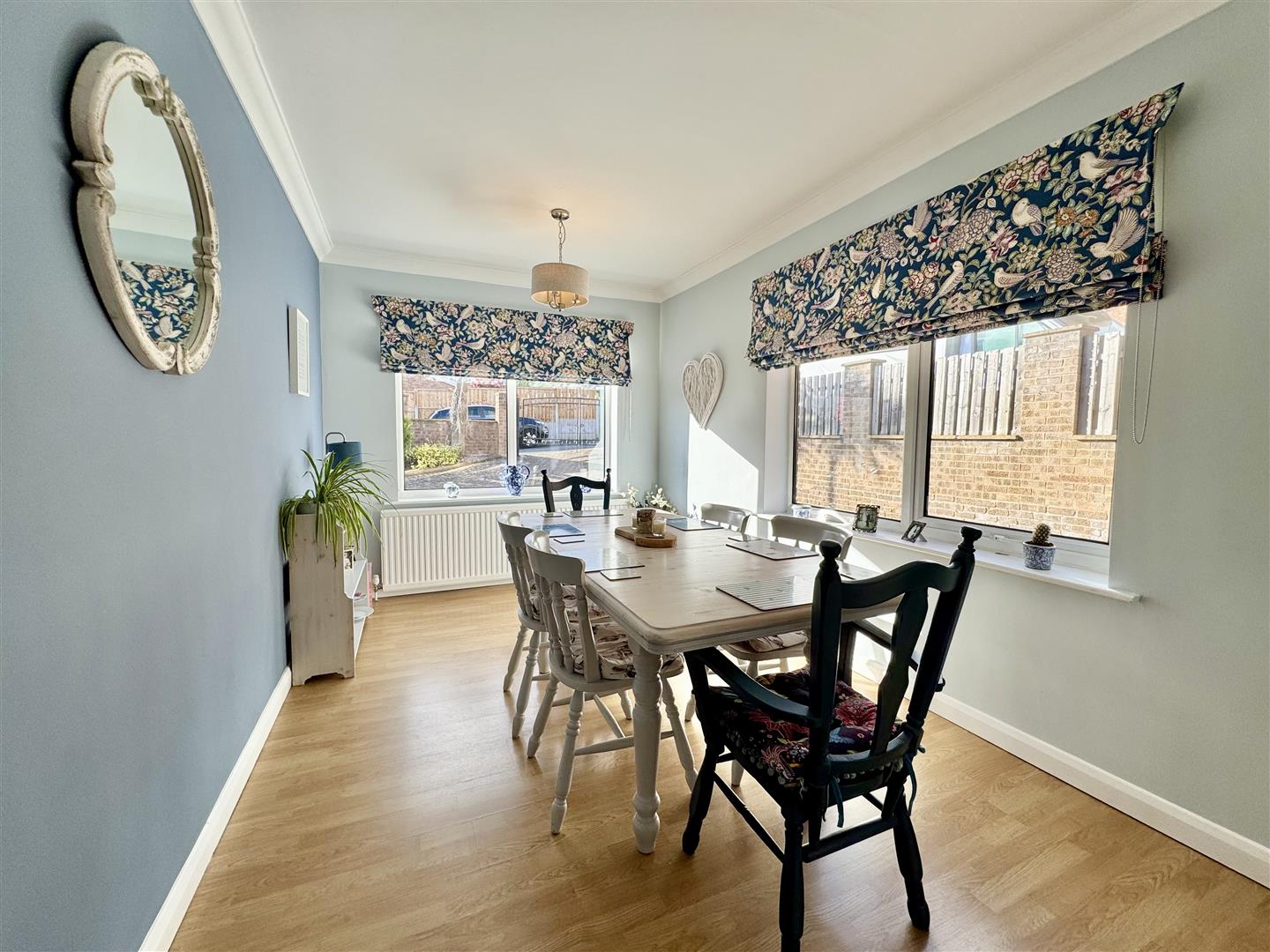 Multi functional room, currently set up as a dining room however with many potential uses. Located at the front of the property, the room has plenty of natural light via the double glazed windows to the front and side, there is laminate flooring underfoot, a wall mounted radiator and two pendant lights. There is coving to the ceiling and an internal door leads to the hallway.