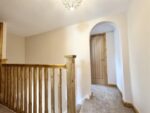 A carpeted staircase with an oak balustrade ascends to the first floor landing which is L-shaped and has a hatch to the loft. Doors lead to the four bedrooms and house bathroom.