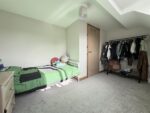 This second double bedroom is again nestled in the eaves with sloping ceilings and a side facing window. It benefits from fitted wardrobes and desk and has neutral décor. A door leads to the landing.