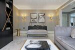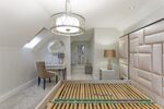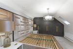 Tucked away, this luxurious bedroom is beautifully decorated and has a bank of high-quality fitted wardrobes with built-in lighting to one wall. The angled ceiling adds interest to the room and is home to two Velux windows which allow light to cascade in. Spot lighting completes the room and the open-plan layout between the sitting area and bedroom enhances the feeling of space.