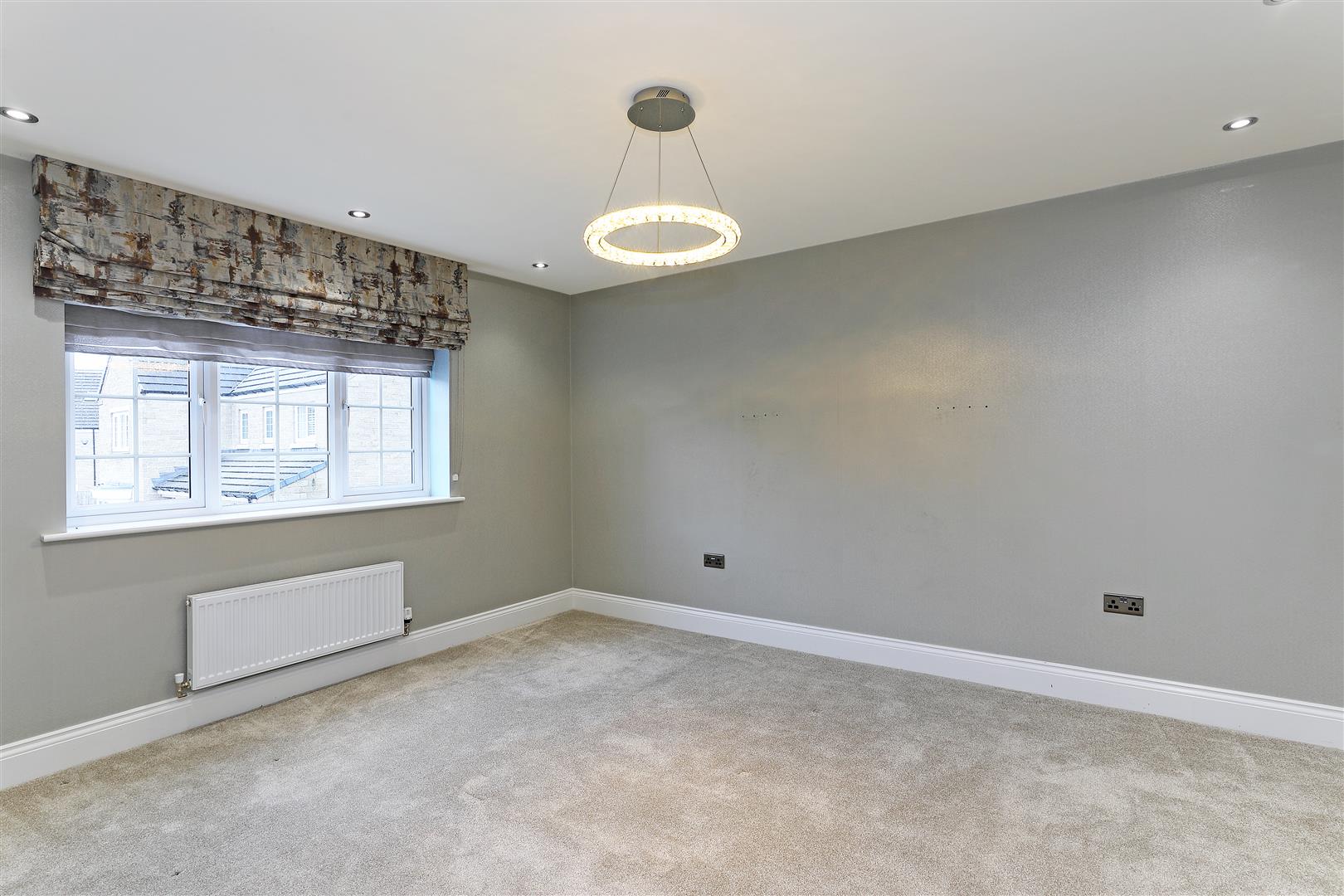 This impressive king-size bedroom provides an abundance of space for freestanding furniture, is decorated in soft neutral tones and has a front-facing window providing an outlook down the cul-de-sac. There are spotlights to the ceiling and an opening leading to the dressing area. A door opens to the first-floor landing.