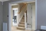 You enter the property through a partially glazed UPVC door and are greeted by a sense of space and style. The hallway is elegantly decorated in neutral tones with designer wallpaper, complemented by carpet underfoot and carpeted stairs rising to the first-floor landing. Thoughtfully designed, there is ample space to store shoes and coats. Doors lead through to the garage, lounge, dining room, downstairs WC and kitchen.