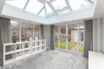 The orangery is a bright and attractive addition to the property, offering a versatile living space filled with natural light. Featuring extensive windows to three sides and a glazed roof with motorised ventilation system, sliding patio doors lead into the garden, with views into the woodland and beyond. Doors lead through to the dining room.