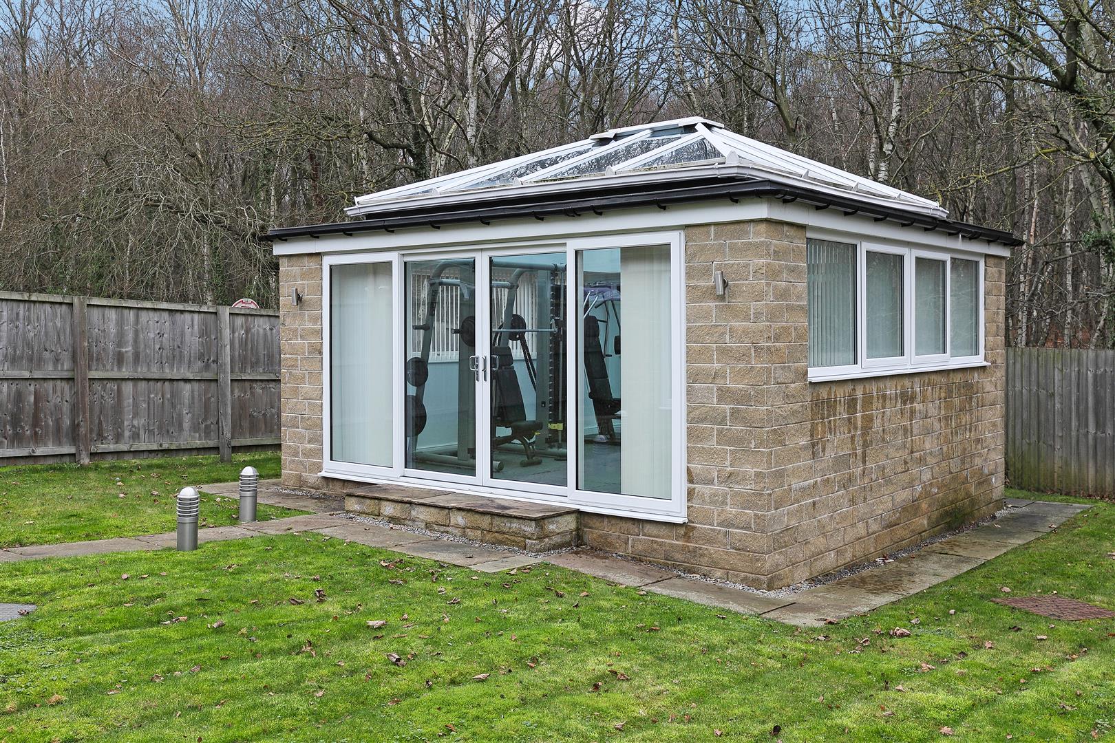 To the front of the property is a lawned garden, double-width driveway and access to the integral double garage. To the rear is a superb detached building, currently set up as a home gym, a lawned garden and purpose-built storage. Beyond the rear garden is picturesque woodland which surrounds the lake. The quaint village is home to popular eateries and is surrounded by countryside, yet benefits from easy commuter links into both Wakefield and Barnsley.