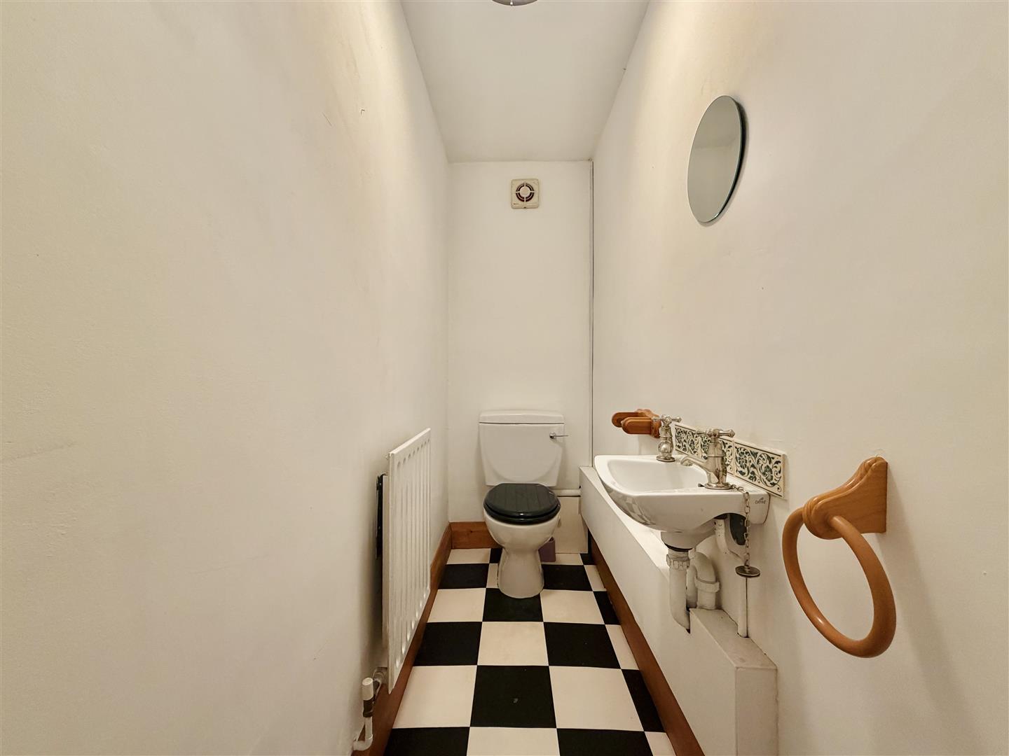 This handy W.C. benefits from a low flush toilet, wall mounted sink, a central heating radiator, vinyl flooring and an automatic extractor fan.