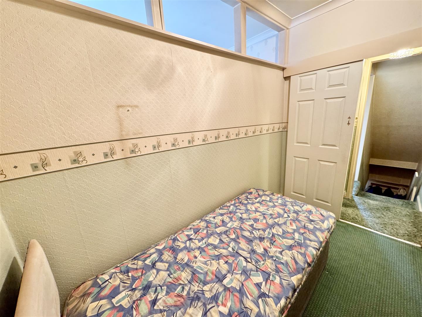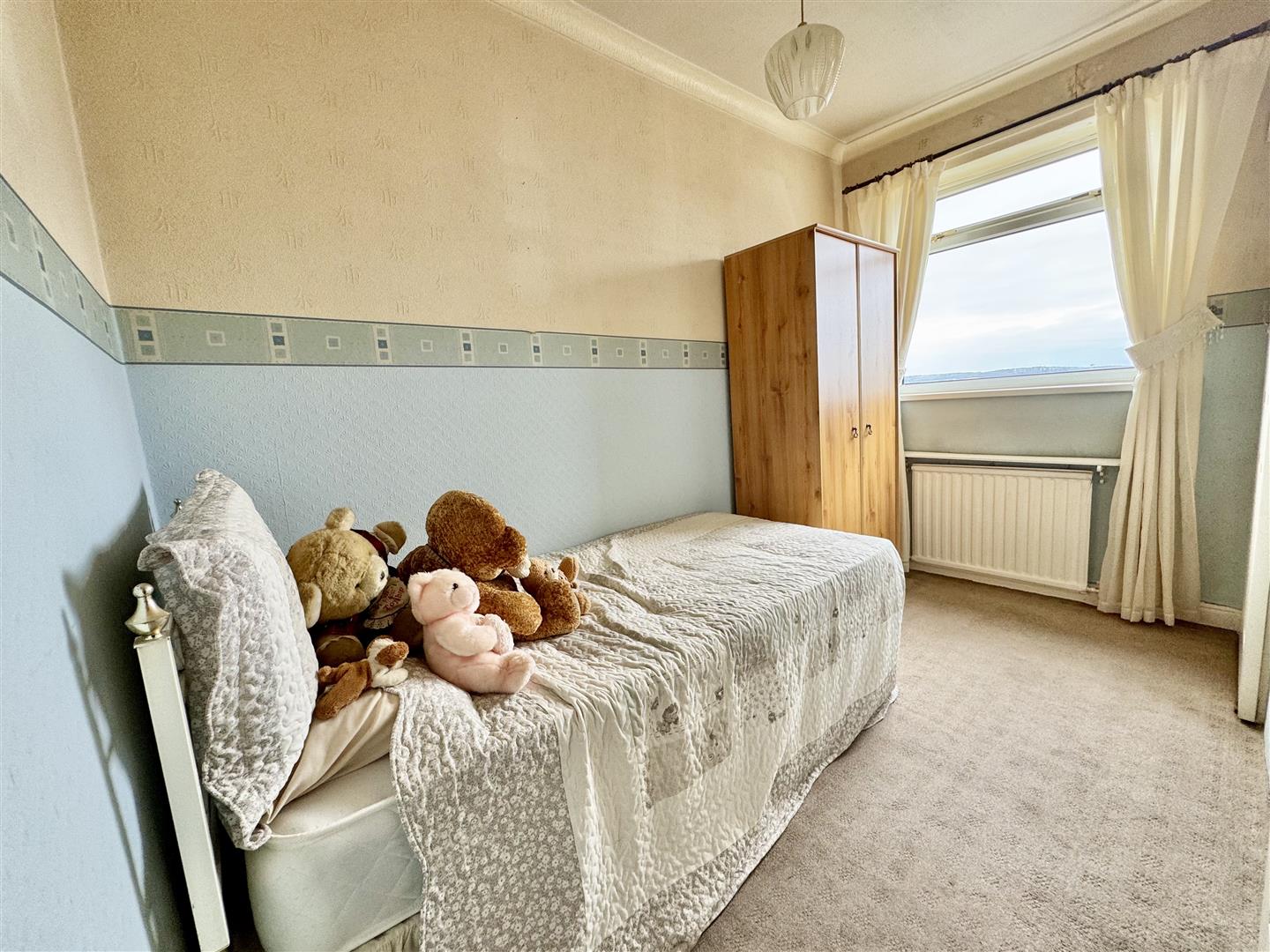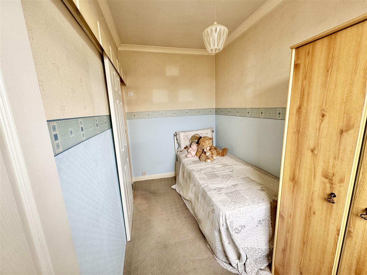 Situated at the rear of the property with a double glazed window bathing the room with natural light and giving good far reaching views. There is carpet flooring, a wall mounted radiator and space for free standing bedroom furniture. An internal door leads to the landing and a sliding door leads to the bottom of the staircase that houses the boiler and takes you to the second floor.