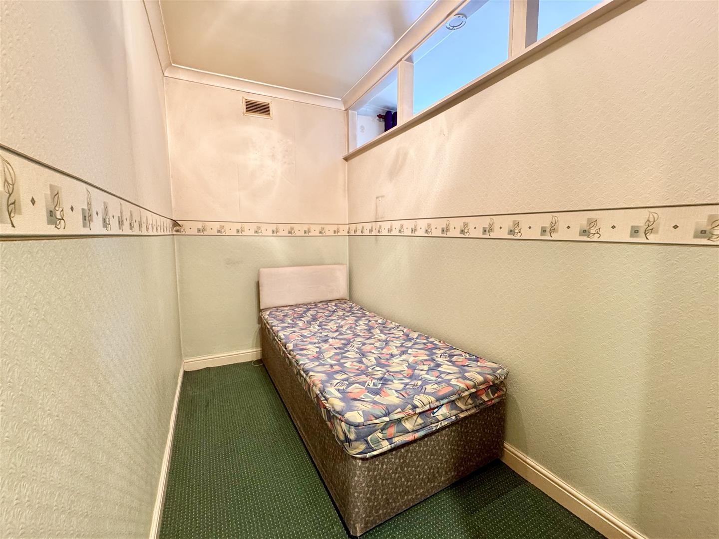 Originally part of the main bedroom, this extremely useful room has many potential uses, including a study, dressing room or occasional bedroom. There is an option to remove the wall to make the main bedroom larger, carpet flooring and shared light is brought in via the glass panels in the wall.