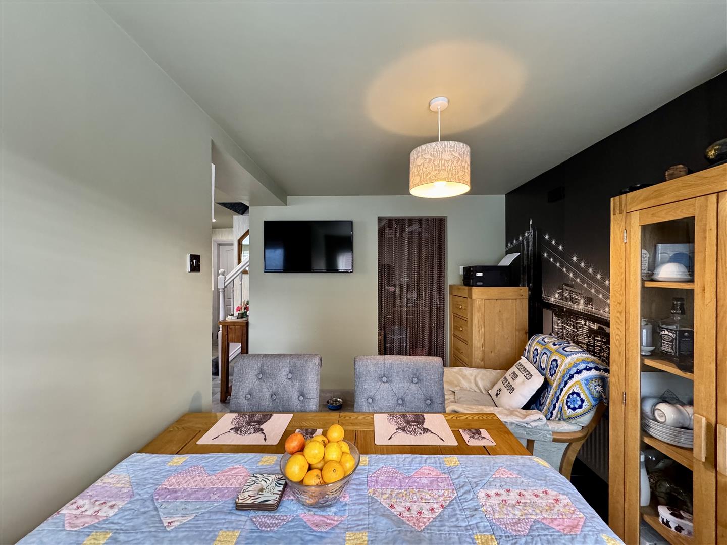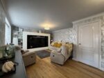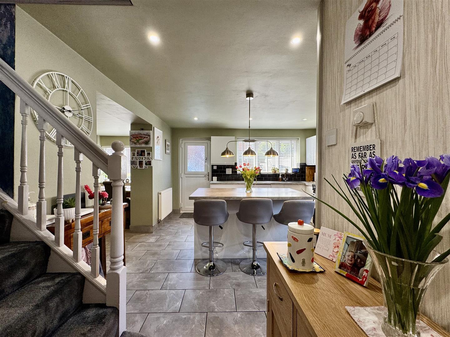 You enter the property through a upvc stable door into this stunning open plan dining kitchen which really is the heart of the home and an ideal place for entertaining family and friends. The kitchen includes a number of white wall and base units, complimentary work surfaces with metro tile splashbacks and a composite sink and drainer with mixer tap over. There is space for a double gas oven with extractor above, room for an American style fridge freezer and plumbing for a washing machine and a dishwasher. A central island provides storage and space for informal dining. Open to the kitchen is a dining area, perfect for a dining table, chairs and freestanding furniture. The area really does offer a great amount of versatility and has two windows providing views over the cul de sac outside. The room is completed with ceramic tile flooring underfoot and spotlights to the ceiling. An opening leads through to the pantry/utility, doors open to the ground floor W.C and the living room, an external door opens to the side of the property and a staircase ascends to the first floor landing.