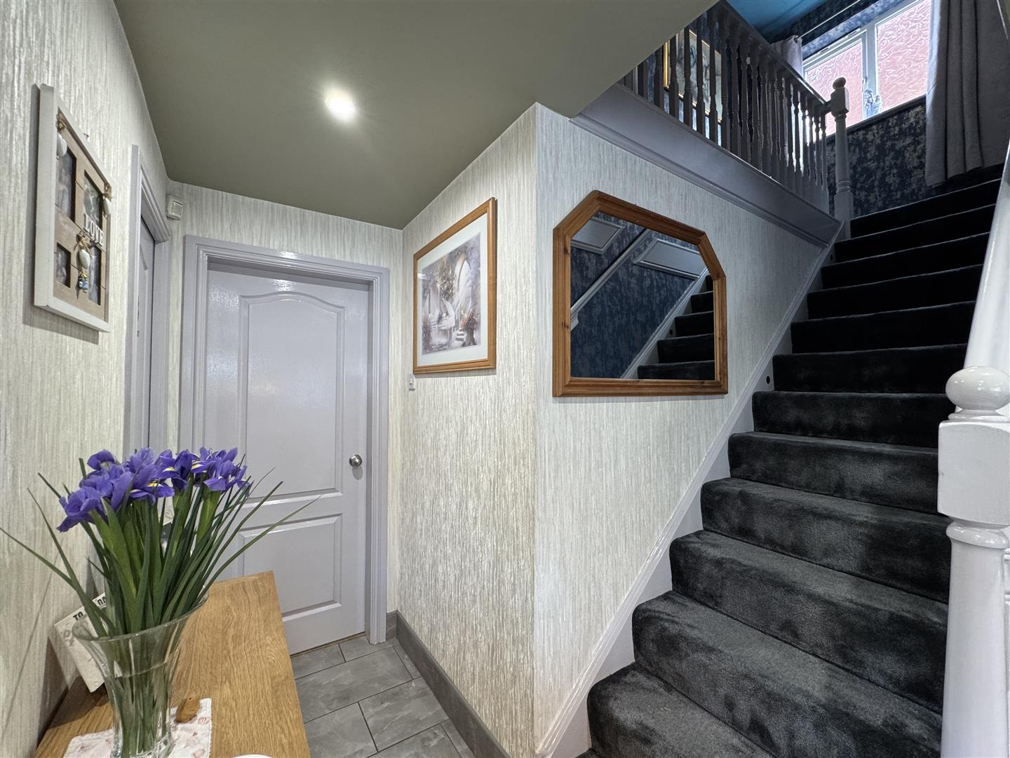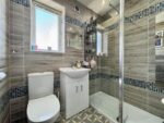This attractive shower room is fitted with a three-piece suite, including a double walk in shower, vanity hand wash basin and a concealed W.C. The room is fully tiled with complimentary vinyl flooring underfoot. A side obscure window allows light to flow through and a door leads through to the landing.