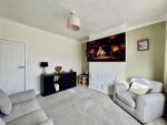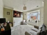 Spanning the rear of the property, this modern dining kitchen is fitted with a range of grey wall and base units with complementary work surfaces with matching upstands and an inset composite sink and drainer with mixer tap over. Integrated appliances include an electric oven, a four ring electric hob with extractor fan over and a dishwasher. There is space for a fridge freezer, tumble dryer and plumbing for a washing machine. There is space for a dining table and chairs. A large rear facing window overlooks the fantastic garden and laminate flooring completes the room. An understairs cupboard provides storage for household items and a door leads through to the living room. An external door opens to the garden.