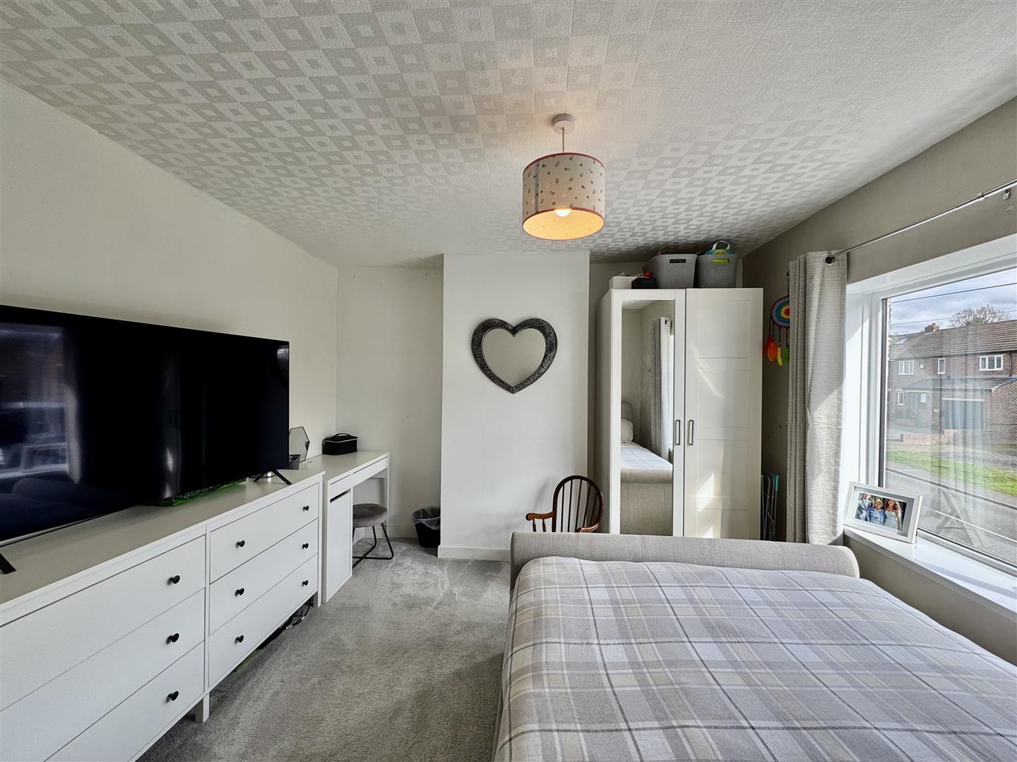 This generous size and tastefully decorated double bedroom overlooks the street scene below and has ample space for freestanding furniture. A door leads to the landing.