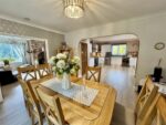 Hugely impressive living room, generous in size and having natural light bathing the room from the double glazed window to patio doors, which leads to the garden. There is a log burning fire in an exposed brick fireplace for those cold winter nights in addition to the two wall mounted radiators. There is laminate flooring, two ceiling lights plus wall light, coving to the ceiling and dado rail. Glazed double doors lead to the dining area.