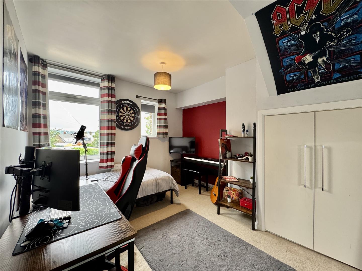 Another well presented double bedroom located at the rear of the property with rooftop views from its window. There is a fitted hanging and storage cupboard and room for bedroom furniture. A door opens to the landing.