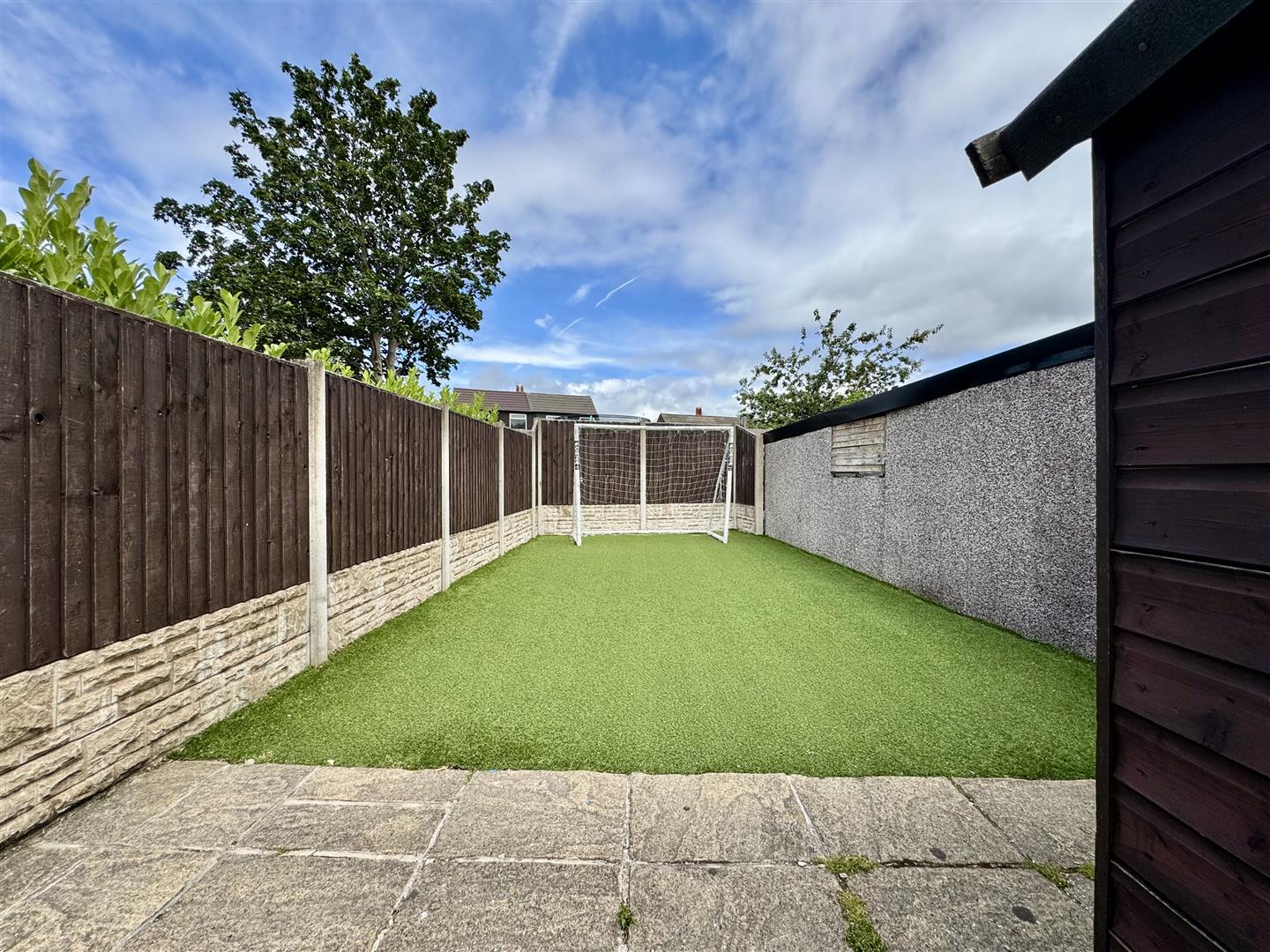 At the rear, opposite the property is a driveway providing off road parking for multiple vehicles and a fence enclosed artificial lawned garden ideal for barbeques, entertaining, ample space for garden furniture and space for a timber outbuilding.