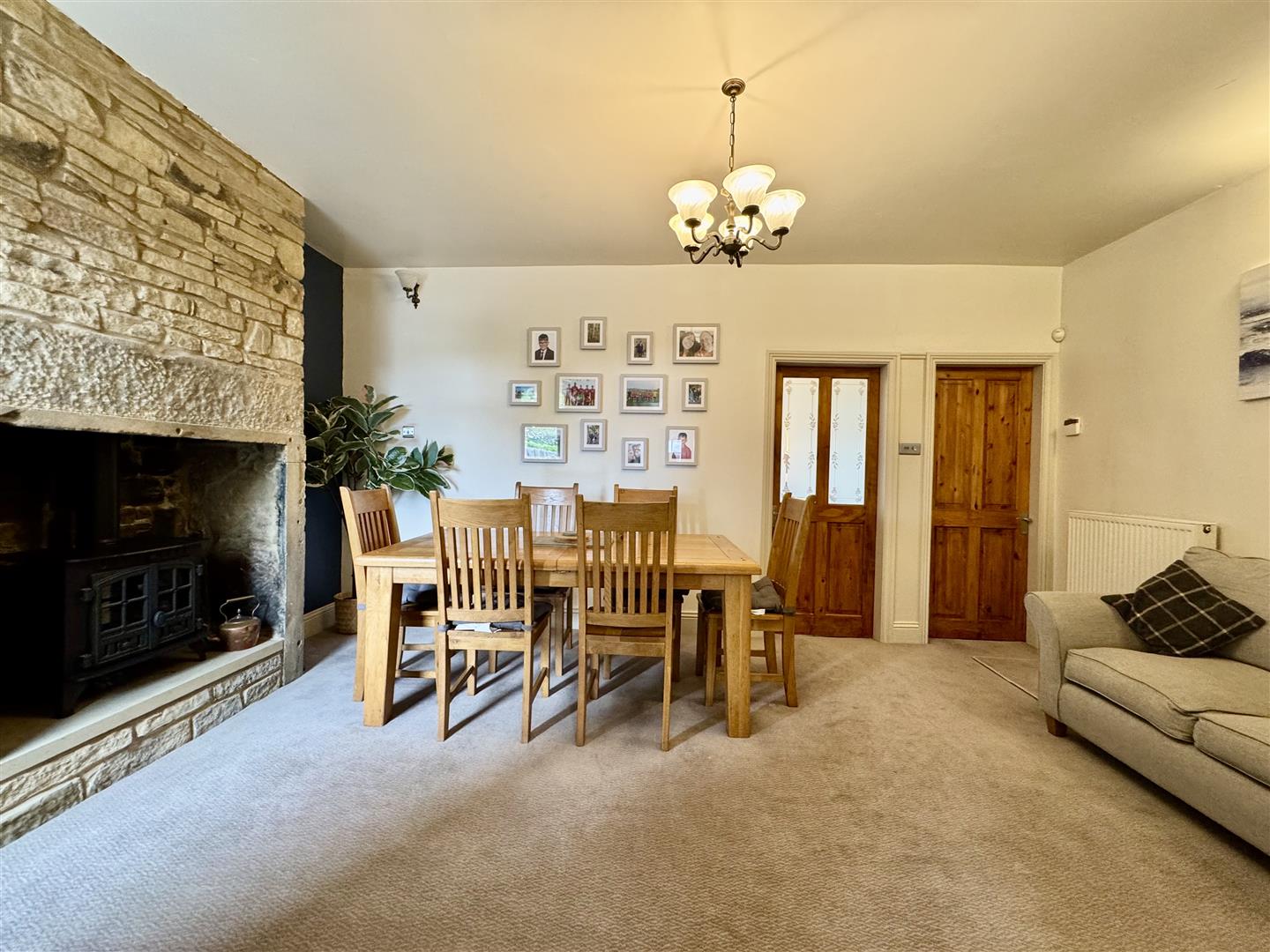 A great space for entertaining, with ample space for a dining table, chairs and further freestanding furniture. The focal point of the room is a wonderful exposed stone fireplace housing a gas stove adding a dash of character. There is a fitted floor to ceiling storage cupboard with desk, a window overlooks the rear patio and a doors leads back through to the living room, to the cellar steps and an opening leads through to the breakfast kitchen.