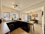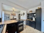 Spanning the rear of the property, this stylish dining kitchen really is the heart of the home. Having not only a beautifully appointed kitchen but space for formal dining. The kitchen area is fitted with a range of black and white base and wall units with contrasting worktops, bevelled metro tile splashbacks and a composite sink with mixer tap over. There is space for a freestanding electric oven, fridge freezer and plumbing for a dishwasher and a washing machine. Herringbone effect laminate flooring runs underfoot through to the dining area which has space for a dining table and chairs. There is fantastic breakfast bar ideal for informal dining, a handy understairs cupboard provides storage and a large window and patio doors allow natural light to flood in whilst offering pleasant views of the garden. Patio doors open to the garden, a door opens to the side of the property and double doors lead back to the living room.