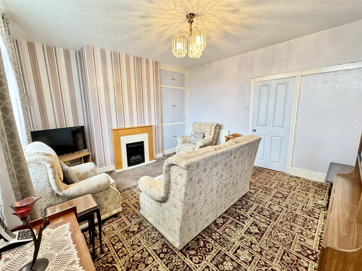 You enter the property through a Upvc front door into the well proportioned and light lounge with the double glazed window to the front bringing in lots of natural light. The focal point of the room is the fireplace, having an electric fire with wood surround, with two wall mounted radiators adding to the heat source. There is carpet flooring, a pendant ceiling light plus a useful cupboard to the chimney recess. An internal door leads to the breakfast kitchen.