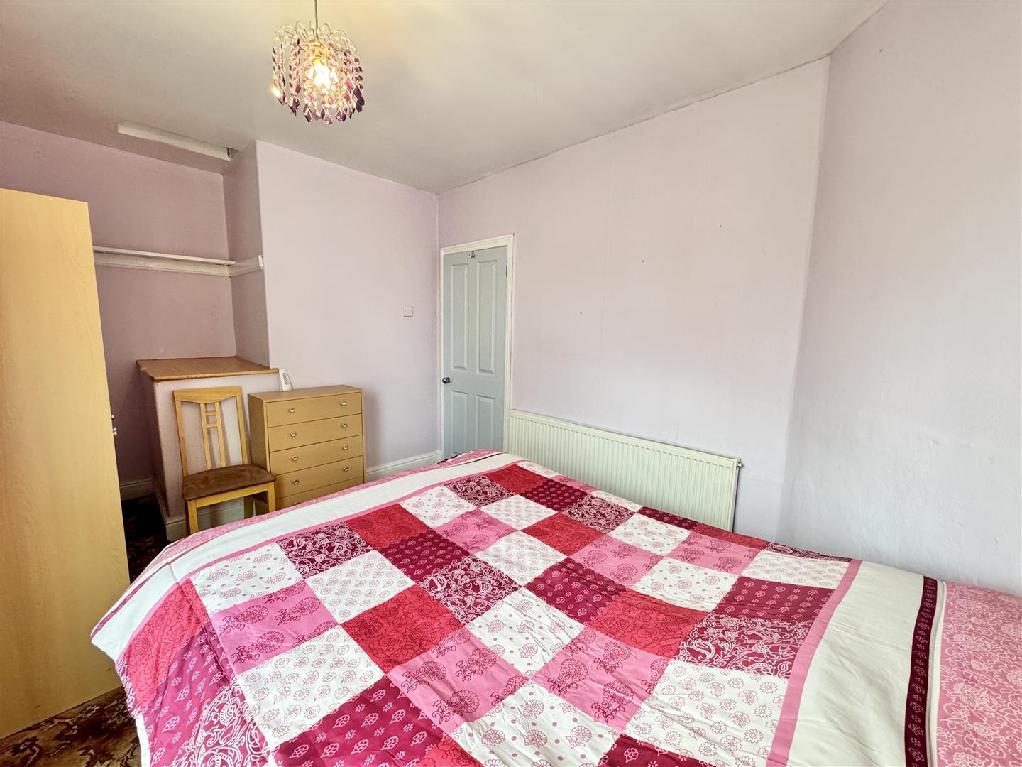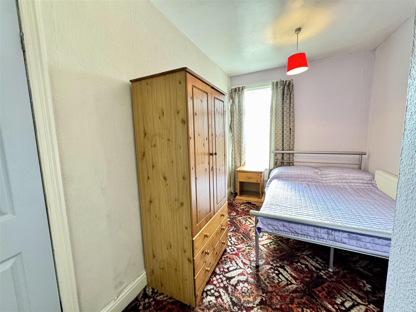 Second double bedroom, this time located at the front of the property with the double glazed window overlooking the front patio. There is space for freestanding bedroom furniture, carpet flooring and a wall mounted radiator. The boiler is situated in a good size and useful cupboard, there is a pendant ceiling light and an internal door leads to the landing.