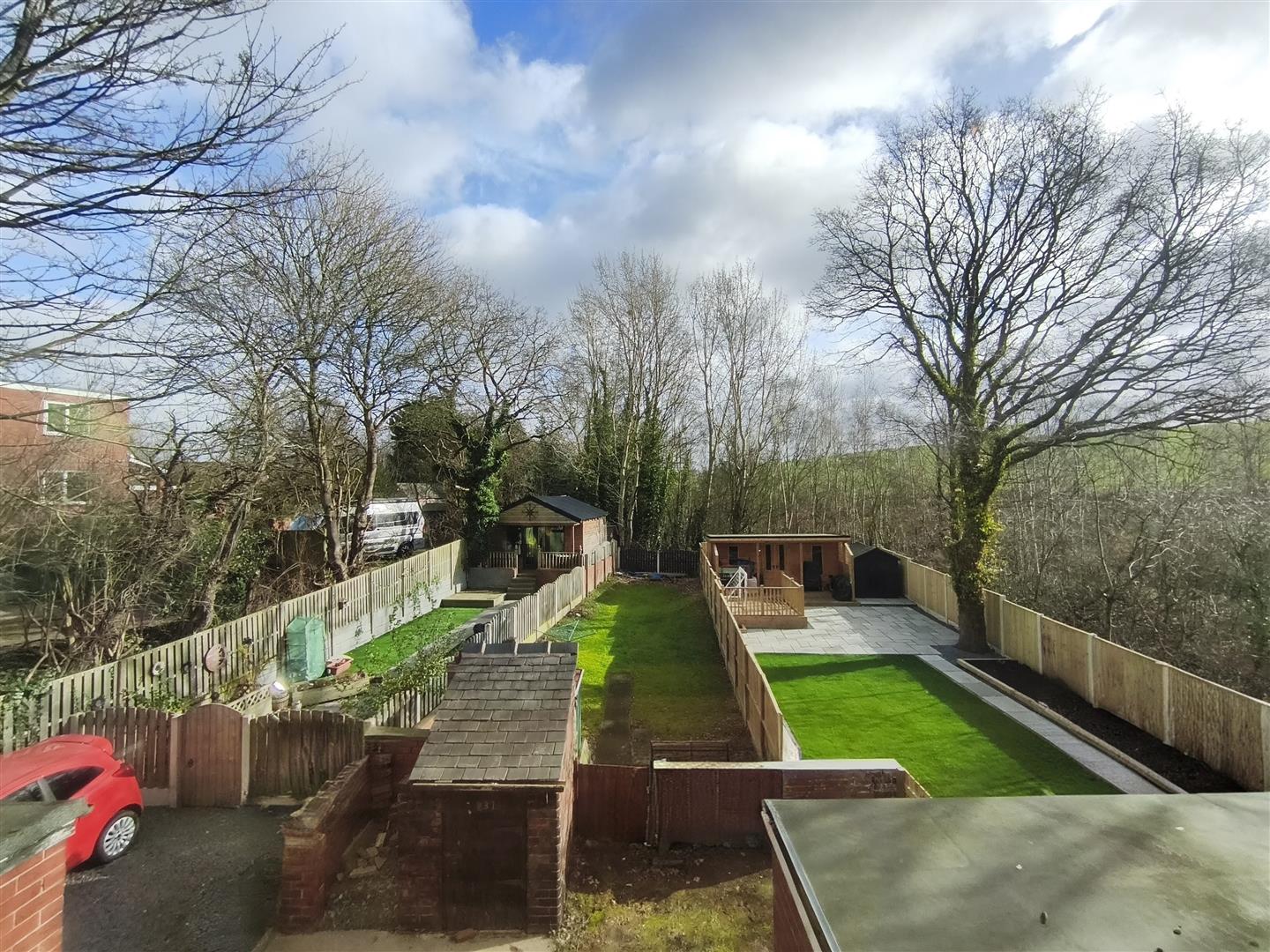 The real beauty of this home is the rear garden, an absolute gem. With a wooded outlook, this south facing external space has so much potential and you only have to look at the neighbours properties to see what could be achieved. There is a patio area adjacent to the property and a long south facing lawn. There is also a compact pebbled patio to the front.