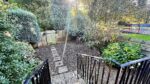 To the rear of the room is the lounge area which has large sliding patio doors, giving access to the decking area and views over the garden. There is carpeted flooring, pendant lighting, an electric wall hung fireplace set in a central chimney breast and an open staircase leads to the first floor.