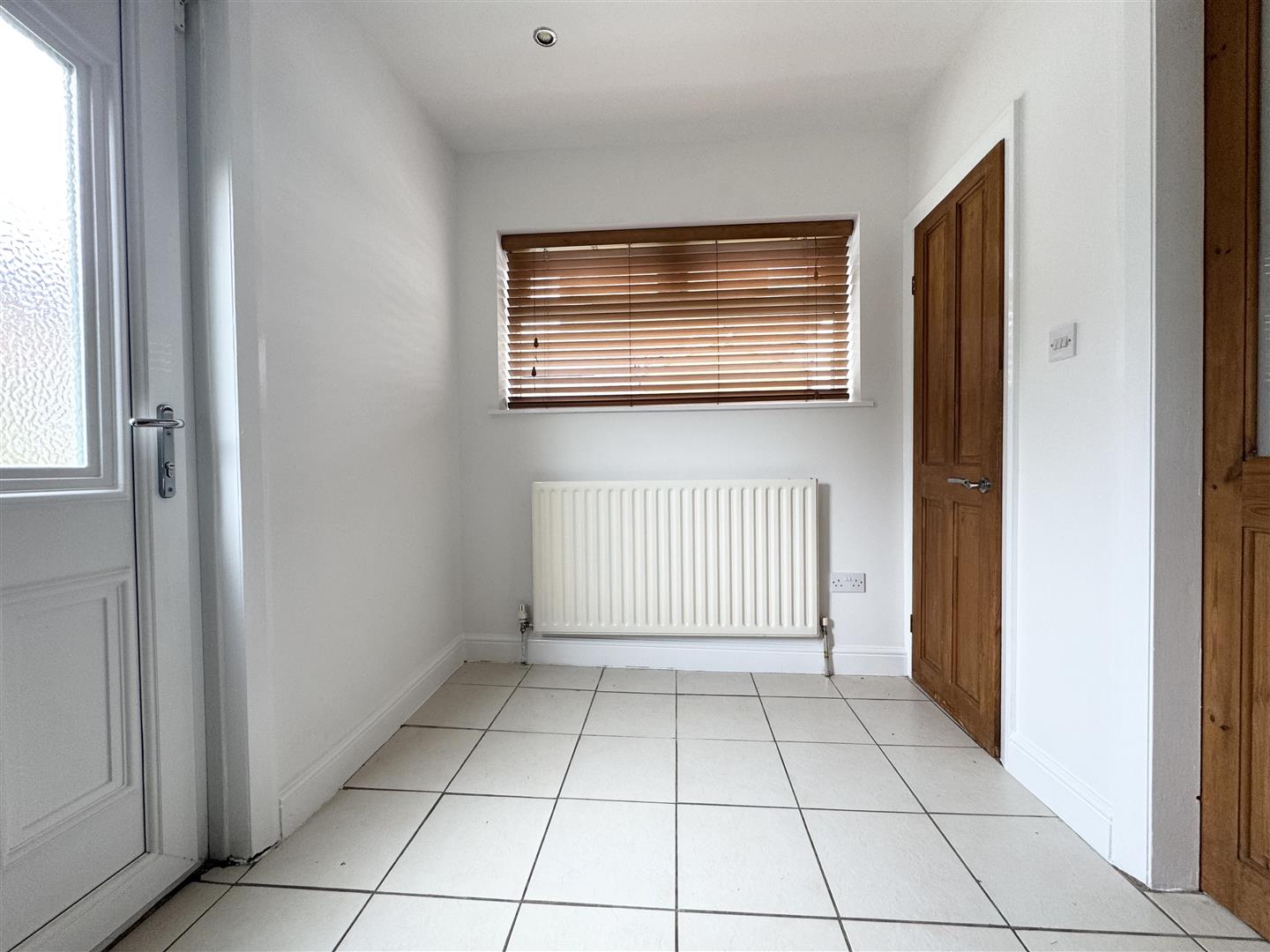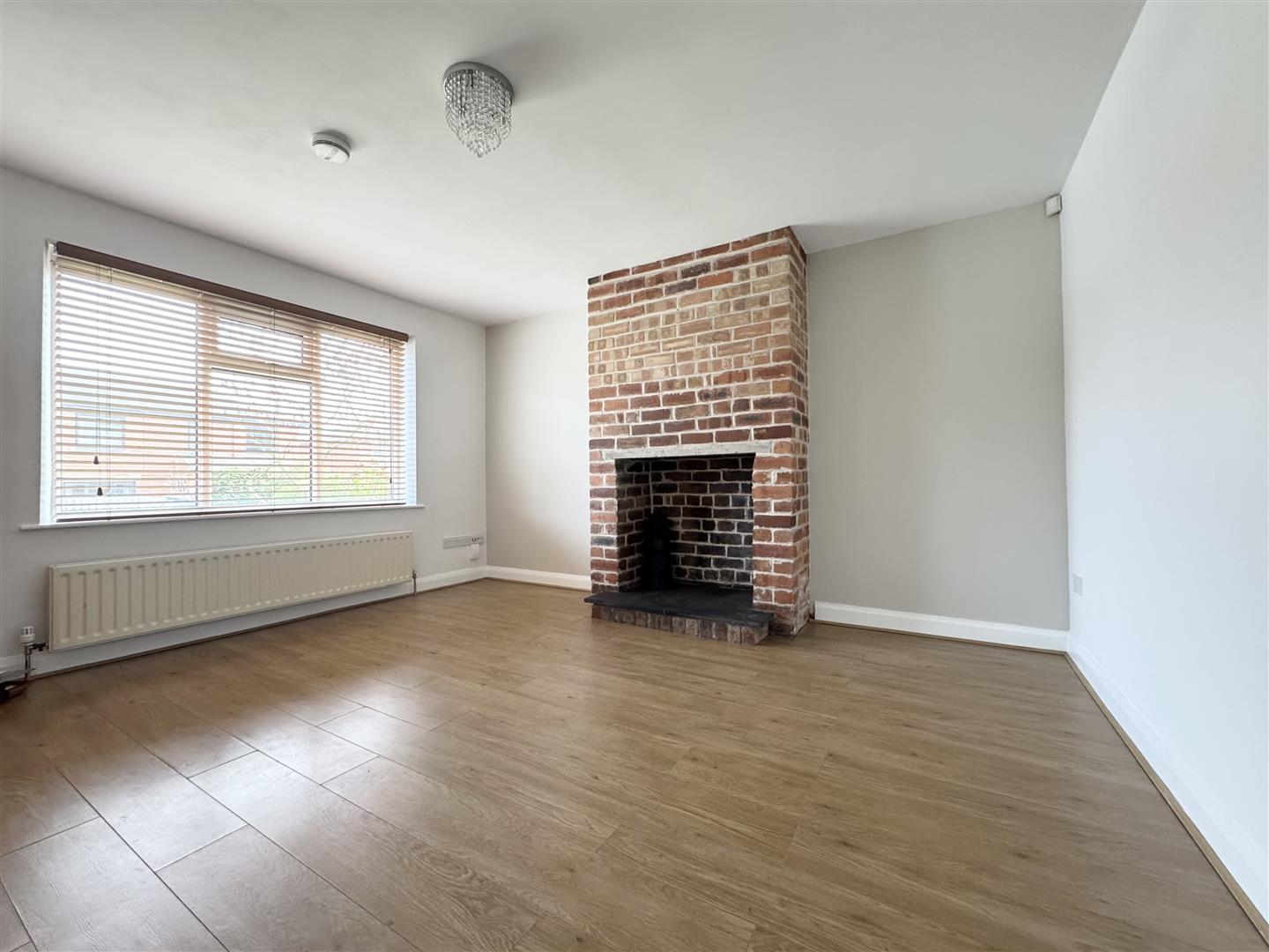 This spacious lounge is light and airy courtesy of the large front facing window. A brick inglenook fireplace creates a lovely focal point in the room and there is ample space for lounge furniture. It has neutral décor, wood effect venetian blinds, laminate flooring and a crystal chandelier style light fitting. Doors lead through to the hallway and kitchen.