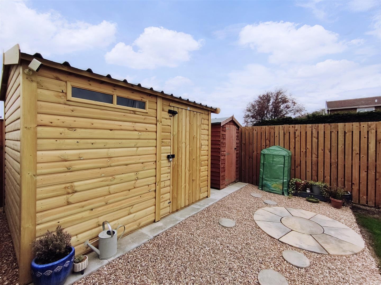 Having one of the larger plots on this development, there rear garden features extended patio areas, a recently seeded lawn and two garden sheds, one larger one which could be used for additional storage, as a workshop or summer house.