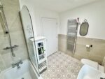 The first floor features two particularly generous double bedrooms, with the main bedroom originally designed to accommodate two separate rooms, providing ample space for comfort and privacy. The stylishly equipped bathroom complements these bedrooms beautifully, ensuring a serene retreat at the end of the day.