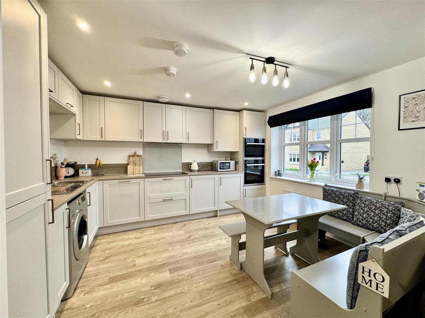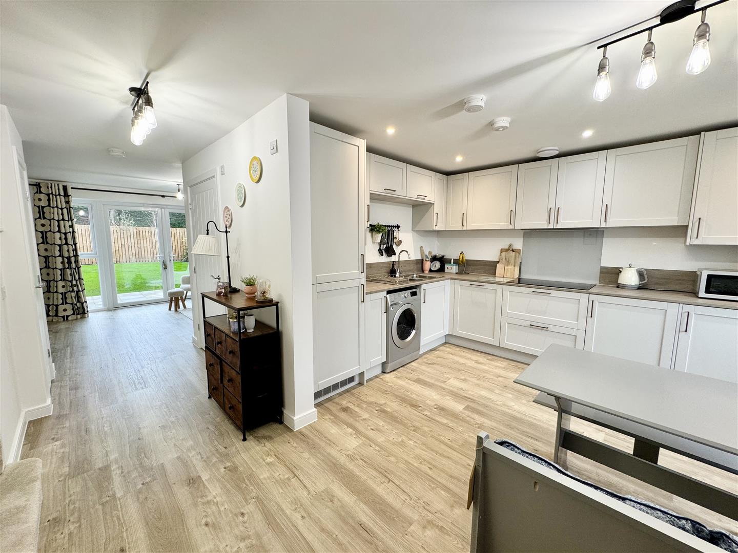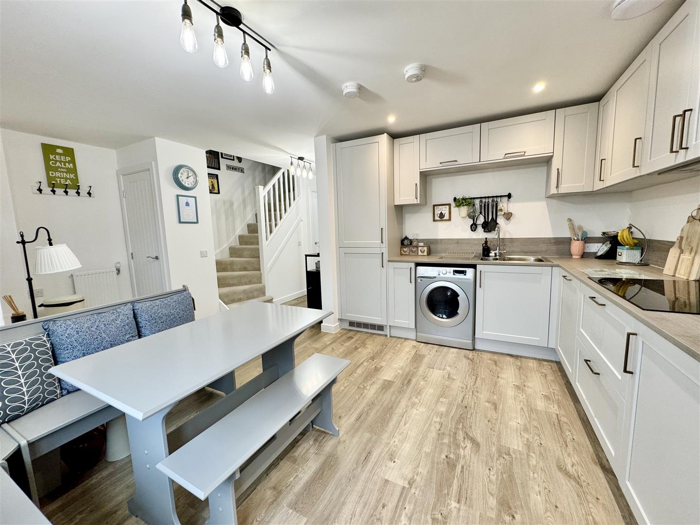 You enter the property through a composite front door into the kitchen diner with a separate area to remove coats and shoes and incorporating a useful storage cupboard. The kitchen itself has been substantially upgraded from the original design, having a great range of wall and base units with a light grey finish, complimentary square edged worktops and inset stainless steel sink with mixer tap. Integral appliances included an eye level double oven with microwave, induction hob with extractor hood oven, dishwasher and fridge freezer plus there is plumbing for a washing machine. There is plenty of space for a dining table and chairs, quality LVT Amtico flooring underfoot which runs through the whole of the ground floor, a wall mounted radiator, ceiling light and a double glazed window brings natural light in, which is complimented by the semi open plan layout of the ground floor and the windows to the rear.