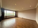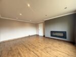 This impressive lounge is generously sized and features a fireplace on one wall. The room is flooded with natural light courtesy of the large front-facing window and is decorated in neutral tones with complementing wood-effect laminate flooring. Spot lighting on the ceiling completes the room, and a door leads to the entrance hall.