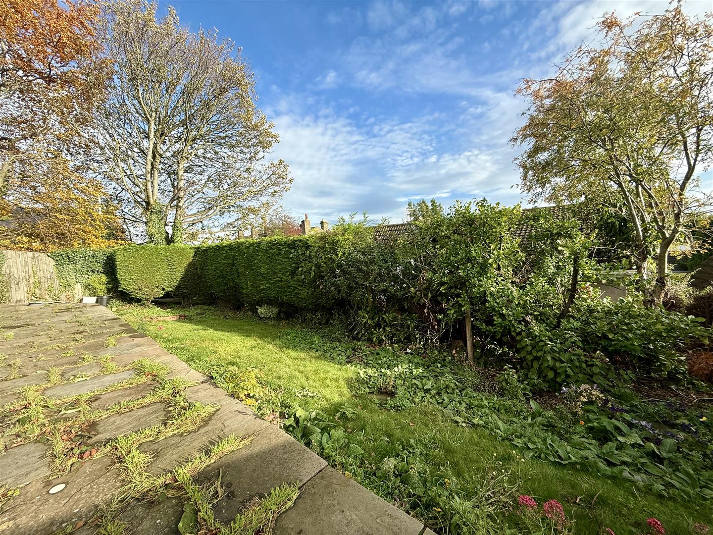 The house sits fairly centrally within a large plot, meaning there is a good-sized garden to the front, which wraps around both sides of the property.