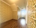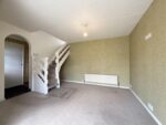 You enter the property through a part-glazed timber door into the entrance hallway, which offers ample space for free-standing furniture such as a shoe bench, storage unit, or coat stand. The hallway features two ceiling lights, wood-effect laminate flooring, and doors leading to the lounge, kitchen, bedroom one, and bathroom. An archway opens into the dining room. There is also a cupboard which houses the property's fuse board.