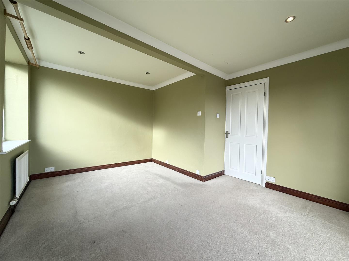 Another good-sized double bedroom that also enjoys lovely views from its rear-facing window, this room is decorated in soft tones with a complementing carpet. There are spotlights on the ceiling, and a door leads to the first-floor landing.