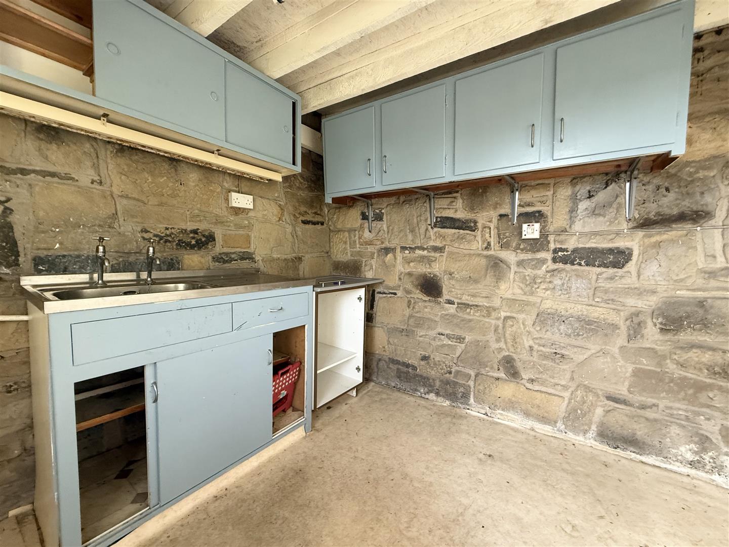 Accessed from the garden, this handy room is an ideal potting shed or storage area for keen gardeners. There are some storage units and a fitted sink, and the property’s central heating boiler is also neatly housed here.