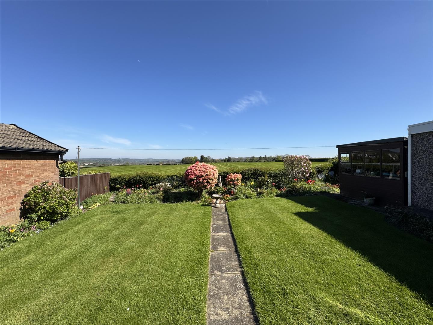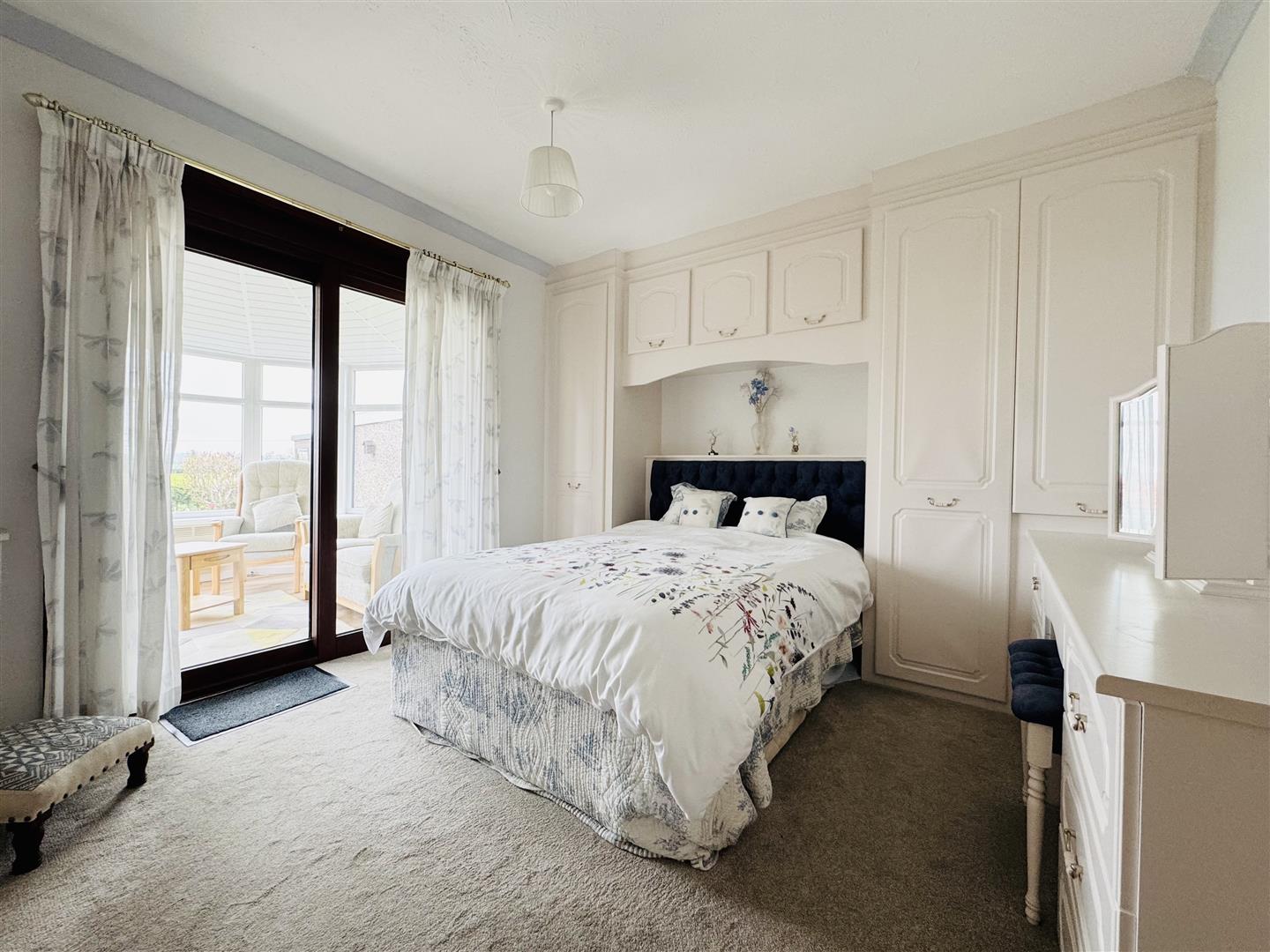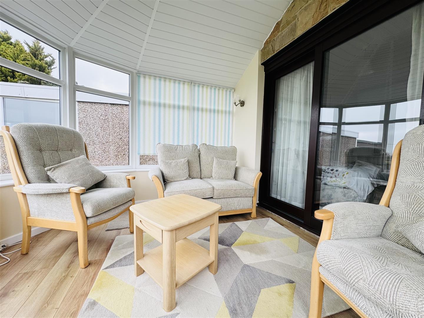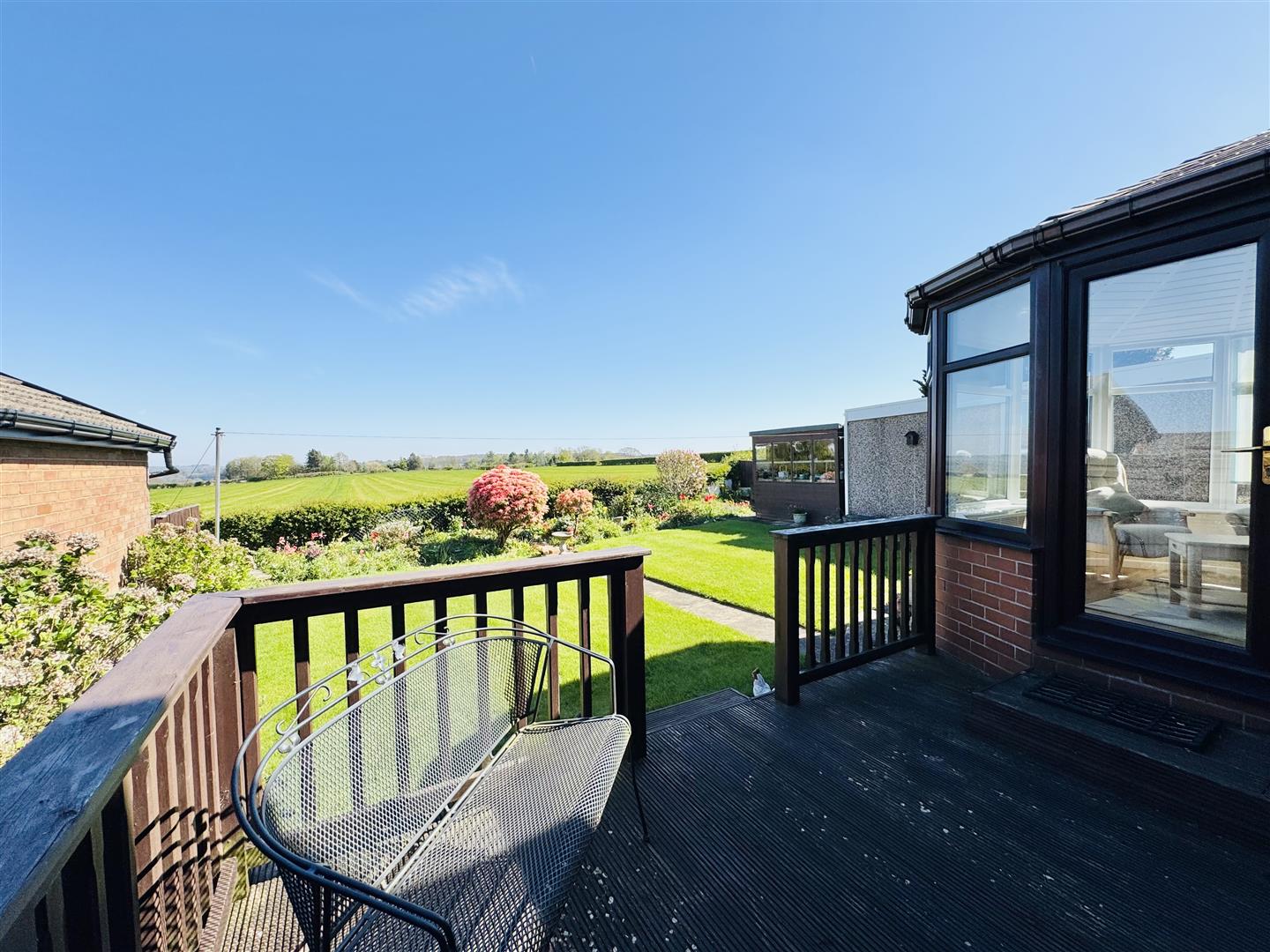 Perfectly placed to take advantage of the location and views to the rear, this lovely light space has dwarf walls, glazed panels and a panelled roof. A sliding patio doors give access to the bedroom and a door leads out to the garden.